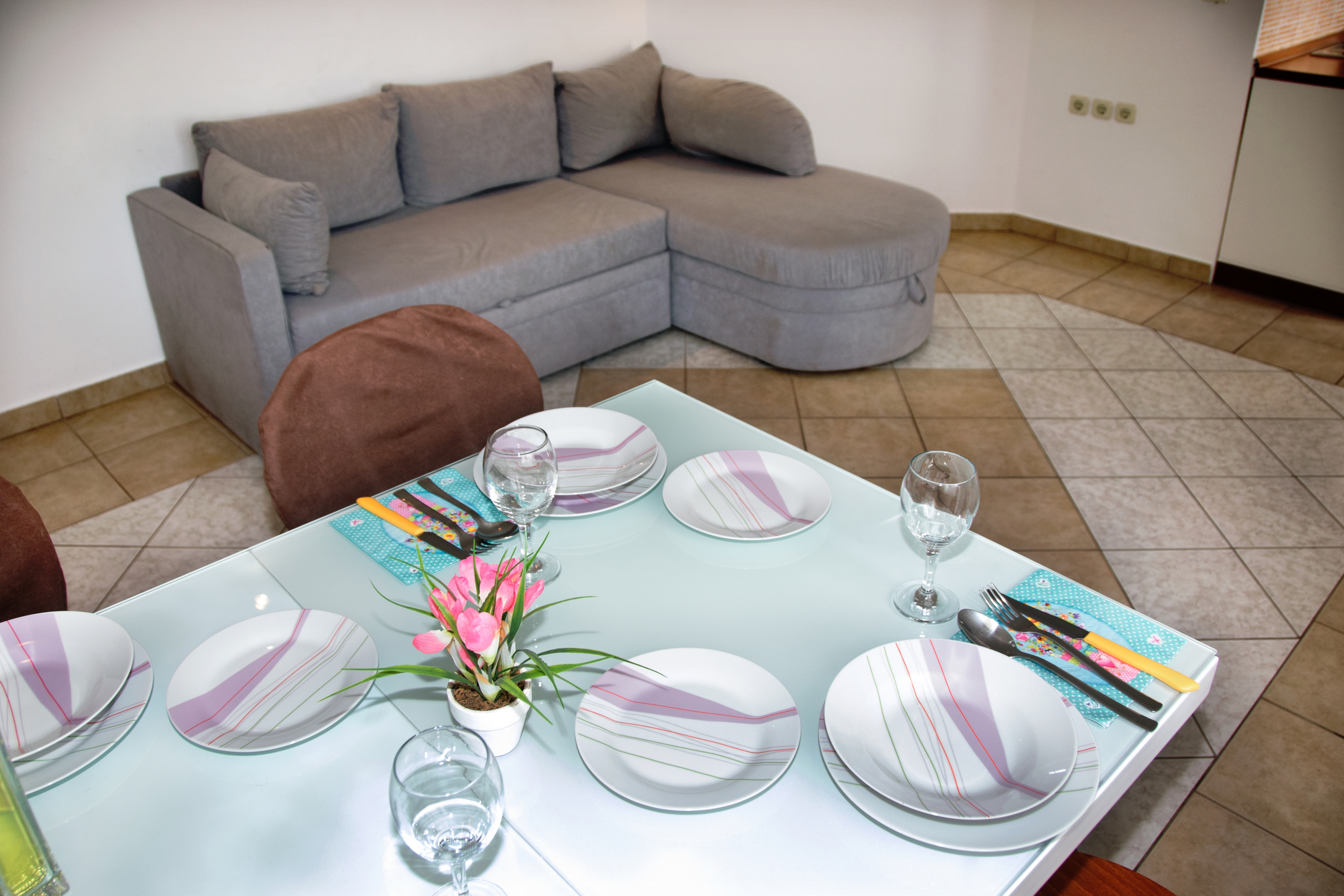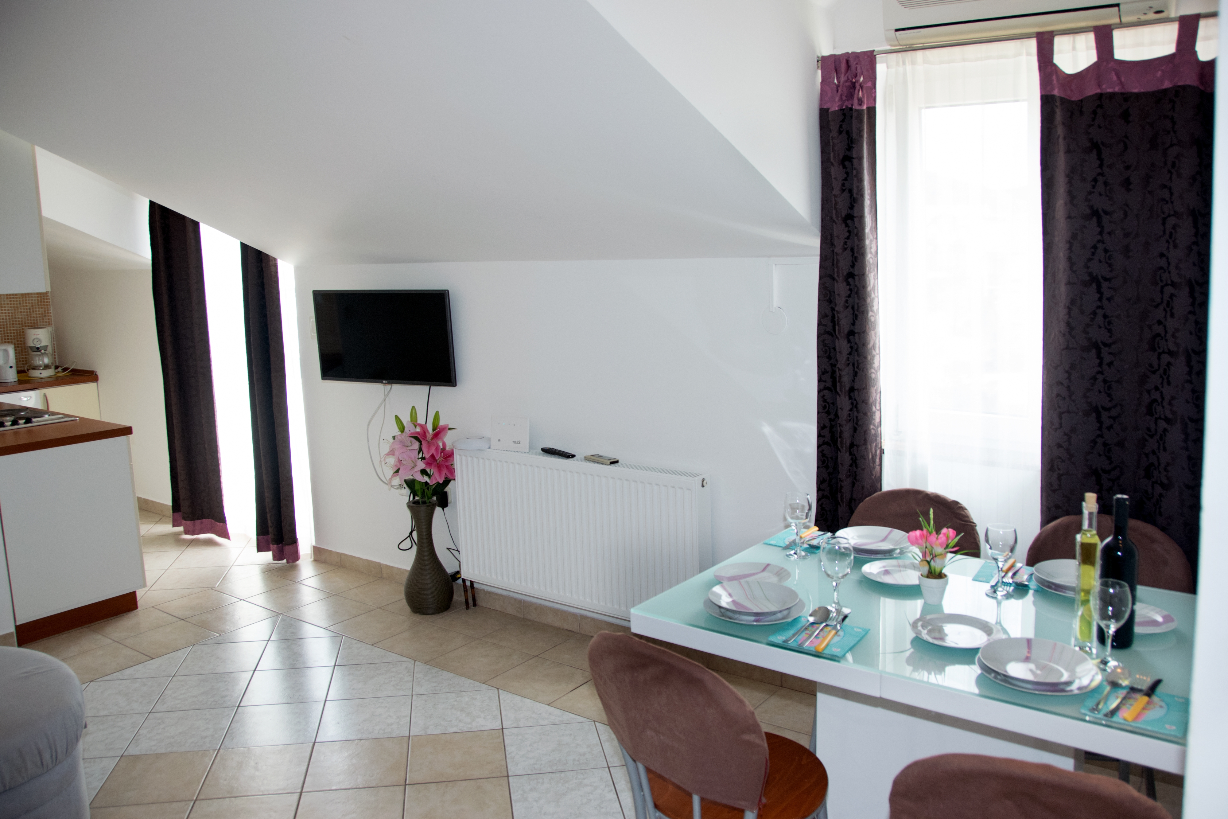 Apartment can accommodate 4 guests. Beds are situated in 1 sleeping rooms, but also in the dining room, within 33m2. Guests can use a private balcony to enjoy the warm summer evenings. Food can be prepared using barbecue which is shared with other guests too. Shared pool is on disposal during stay. This accommodation unit welcomes pets at an additional charge. INCLUDED IN THE PRICE: tourist tax, final cleaning, air-conditioning, central heating, pool, parking, internet, hairdryer. OBLIGATORY ADDITIONAL COSTS: short stay fee (surcharge depending on a number of booked nights: 30% - 1, 20% - 2, 10% - 3). OPTIONAL ADDITIONAL COSTS: pets (€5.00 per night). The availability of additional services for your chosen dates of stay, as well as their prices (if none are listed) must be checked ahead of time. Any additional services not shown in the price calculation are payable directly to the property owner and only if used by the visitor.