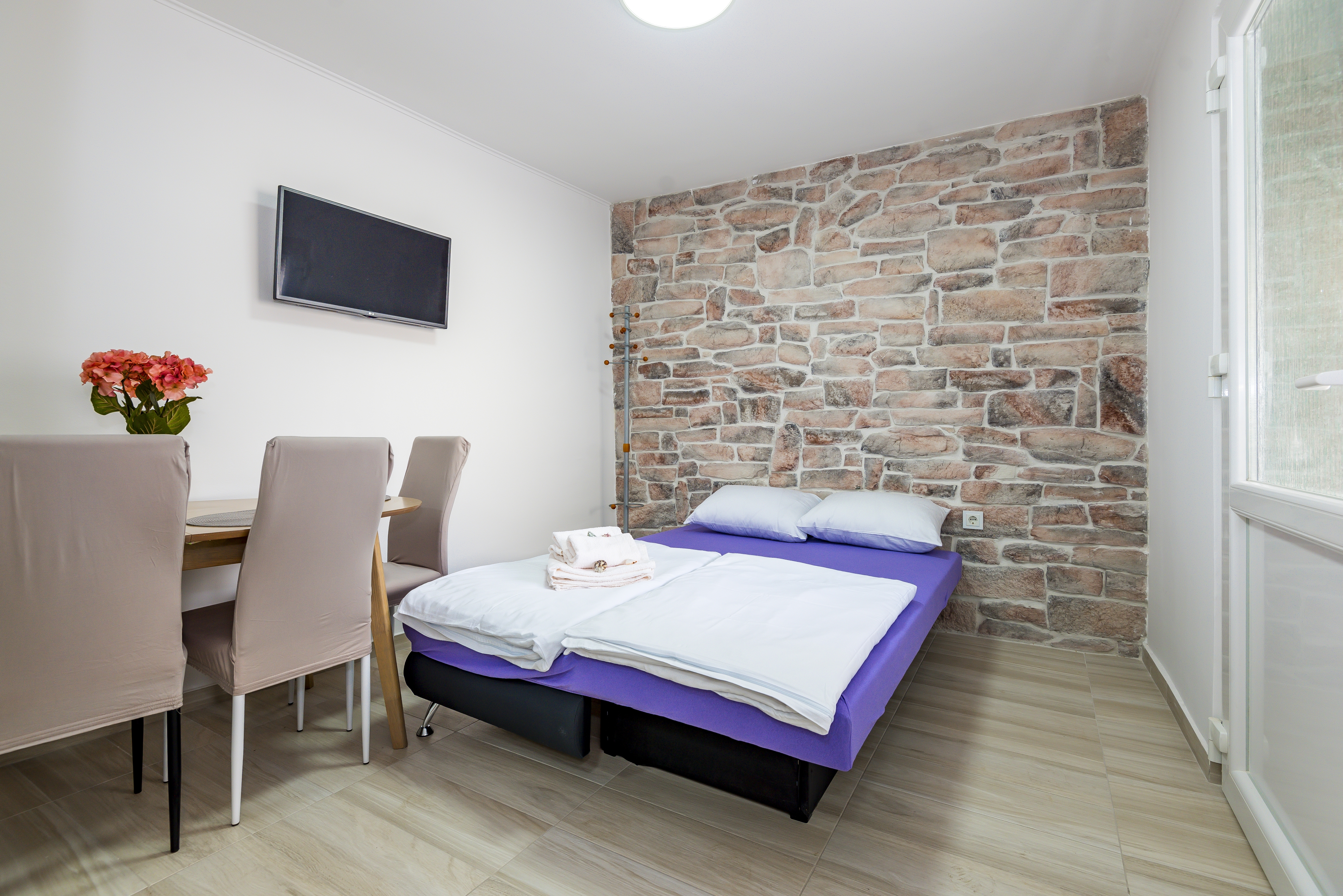 Apartment can accommodate 4 guests. Beds are situated in 1 sleeping rooms, but also in the living room, within 41m2. Guests can use a private terrace to enjoy the warm summer evenings. For full enjoyment and relaxation there is a private barbecue for this accommodation guests only. Notthe rooms of the booked accommodation unit are connectedone whole. INCLUDED IN THE PRICE: tourist tax, final cleaning, air-conditioning, parking, internet, iron, ironing board, hairdryer. The availability of additional services for your chosen dates of stay, as well as their prices (if none are listed) must be checked ahead of time. Any additional services not shown in the price calculation are payable directly to the property owner and only if used by the visitor. Discounts to the base price: free day 14=13 (for reservations of 14 or more days you get one free day for the stay until 31122026).