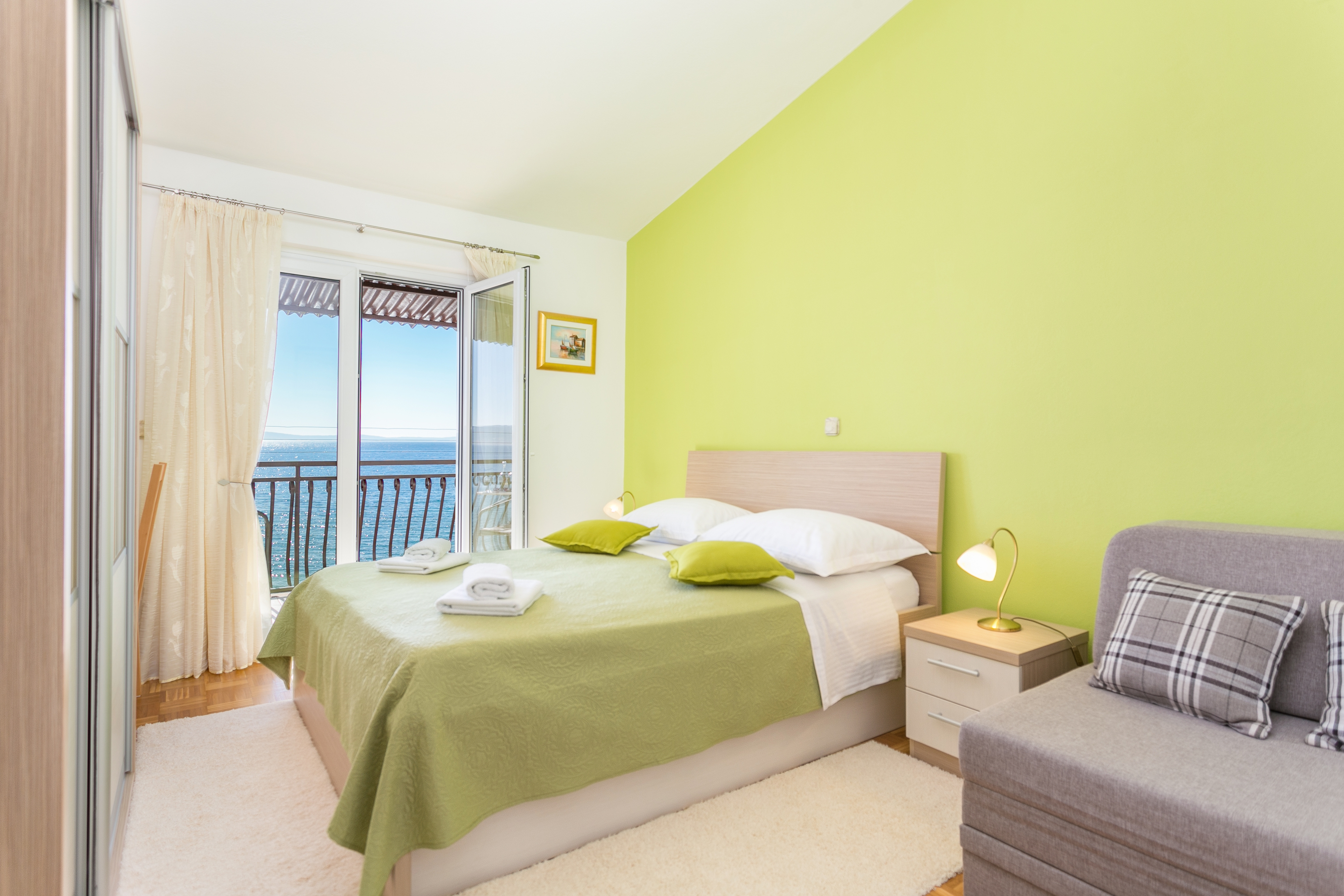 Apartment can accommodate 4 guests. Beds are situated in 1 sleeping rooms, but also in the living room, within 41m2. Guests can use a private balcony to enjoy the warm summer evenings. The apartment offers the sea view. Food can be prepared using barbecue which is shared with other guests too. INCLUDED IN THE PRICE: tourist tax, final cleaning, air-conditioning, parking, internet, hairdryer, sunshade, sunchairs. The availability of additional services for your chosen dates of stay, as well as their prices (if none are listed) must be checked ahead of time. Any additional services not shown in the price calculation are payable directly to the property owner and only if used by the visitor. Discounts to the base price: free day 14=13 (for reservations of 14 or more days you get one free day for the stay until 31122026).