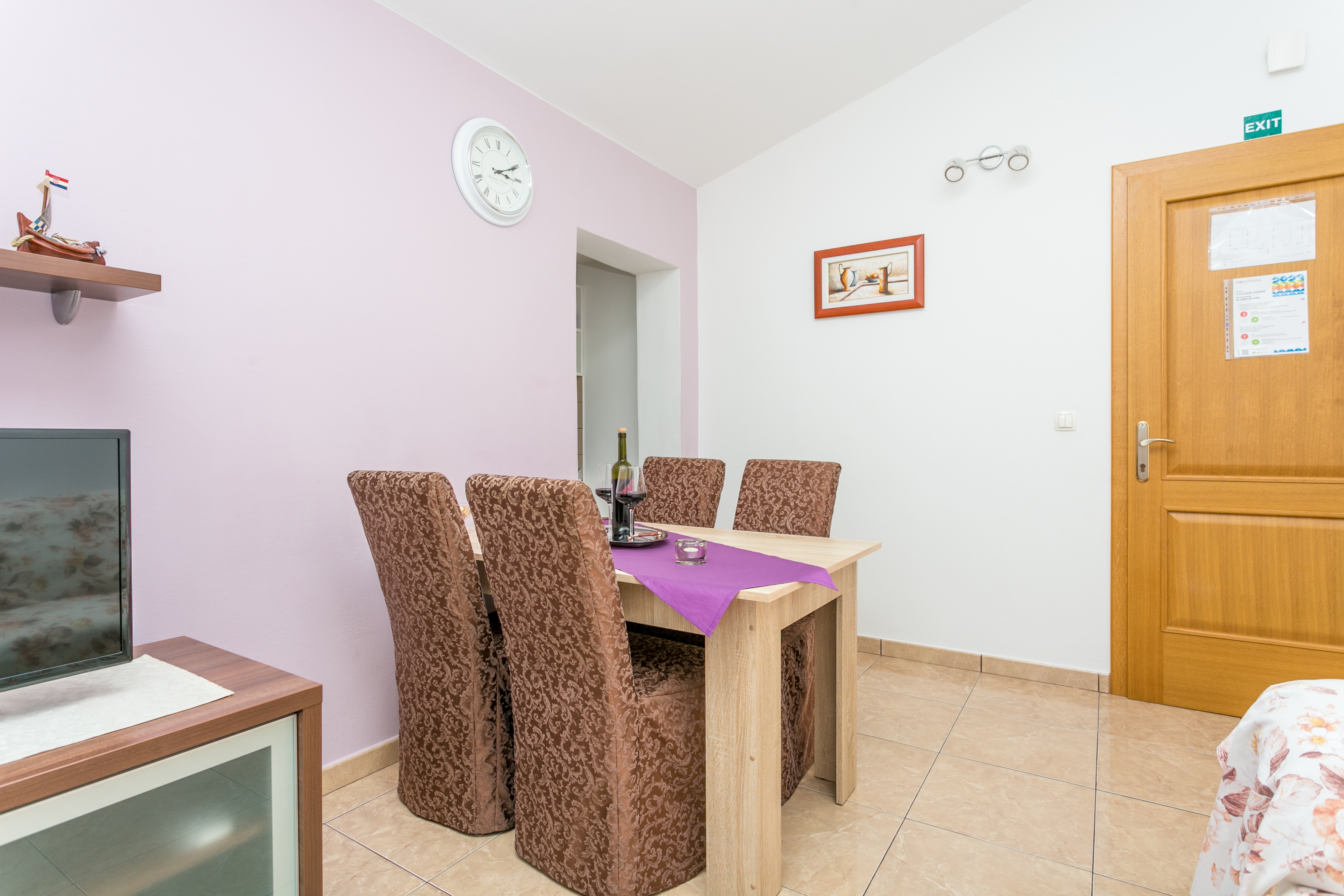 Accommodation units of type Apartment (1) can be found in house 13725 in the town of Podstrana, Split - Central Dalmatia. The house is 5 m away from the sea and is categorized as "Facilities near a beach". The nearest beach to this accommodation is a pebble beach. As the house contains multiple apartments, the house will be shared with other guests. Your hosts will not be staying in the house during your holiday. The house owner is under no obligation to accept additional persons and pets that were not stated in the reservation request and it is necessary to report them in advance.AMENITIES Courtyard (200m2, Shared with another property, Sitting area), Parking lot (Number of parking spaces: 2, Distance from the house: In the courtyard), Barbecue: shared, WiFi Internet, Hairdryer, Sunshade, Sunchairs LOCATION AND ACCESS The property is located by the main road There is no road between the property and the beach The property is located by the beach Number of stairs from the property to the beach: 7 Car access possible: Yes The facility is situated in relatively quiet surroundings DISTANCES Sea: 5 m Beach: 5 m Center: 13 km Shop: 300 m Urgent medical care: 11 km Pharmacy: 1 km Exchange office: 4.1 km ATMBank machine: 1.8 km Tourist info: 4.9 km Airport: 28.7 km