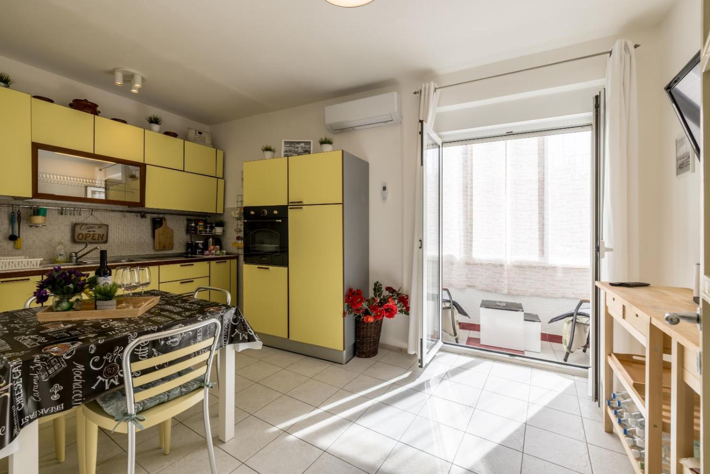 Two-Bedroom Apartment. Featuring a private entrance, this air-conditioned apartment consists of a kitchen, 2 bedrooms and 1 bathroom with a shower and a bidet. The well-equipped kitchen features a stovetop, a refrigerator, kitchenware and an oven. Boasting a balcony with ancourtyard view, this apartment also provides a washing machine and a flat-screen TV with cable channels. The unit offers 2 beds.