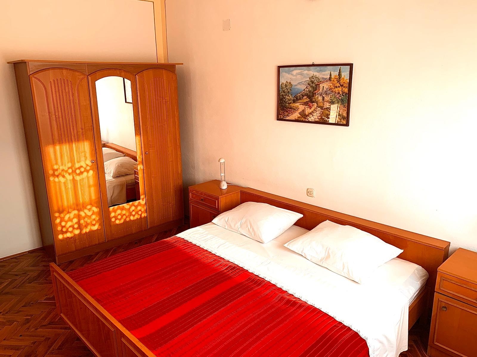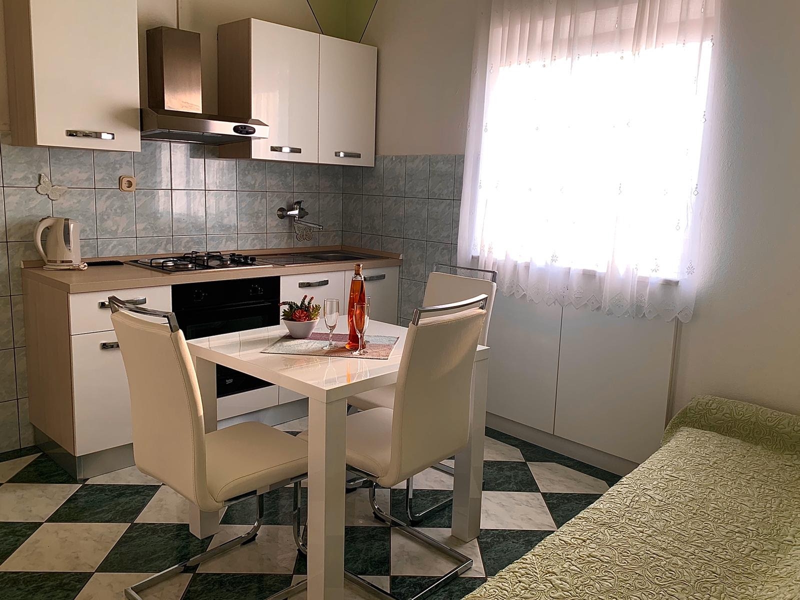 Apartment can accommodate 3 guests. Beds are situated in 1 sleeping rooms, but also in the dining room, within 35m2. Guests can use a private terrace to enjoy the warm summer evenings. Food can be prepared using barbecue which is shared with other guests too. INCLUDED IN THE PRICE: tourist tax, final cleaning, air-conditioning, parking, internet, iron, ironing board, hairdryer. OBLIGATORY ADDITIONAL COSTS: short stay fee (surcharge depending on a number of booked nights: 30% - 1, 20% - 2, 10% - 3). OPTIONAL ADDITIONAL COSTS: laundry (€5.00 washing). The availability of additional services for your chosen dates of stay, as well as their prices (if none are listed) must be checked ahead of time. Any additional services not shown in the price calculation are payable directly to the property owner and only if used by the visitor.