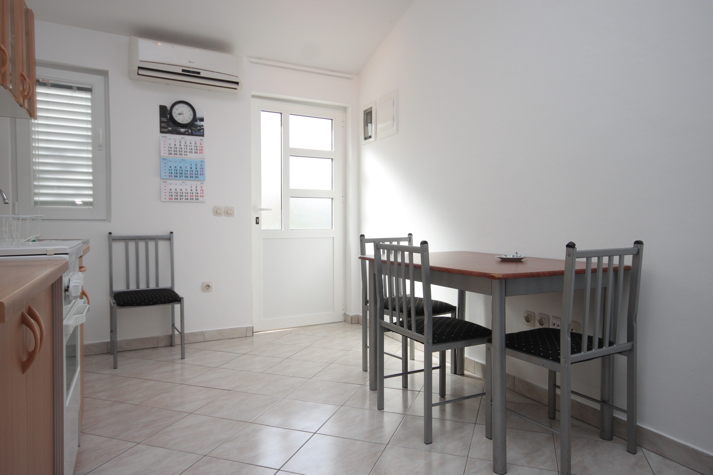 Apartment can accommodate 4 guests. Beds are situated in 1 sleeping rooms, but also in the living room, within 33m2. Guests can use a private terrace to enjoy the warm summer evenings. Food can be prepared using barbecue which is shared with other guests too. INCLUDED IN THE PRICE: tourist tax, final cleaning, air-conditioning, central heating, parking, internet, laundry, baby cot, additional bed, iron, ironing board, hairdryer, portable barbecue, sunshade, sunchairs, 1 bed for children (included in the price). OPTIONAL ADDITIONAL COSTS: boat (€60.00 per night), boat mooring (€25.00 per night). The availability of additional services for your chosen dates of stay, as well as their prices (if none are listed) must be checked ahead of time. Any additional services not shown in the price calculation are payable directly to the property owner and only if used by the visitor. Discounts to the base price: free day 28=25 (for stays of 28 days or more, we give you 3 days free of charge for the stay until 31122026).