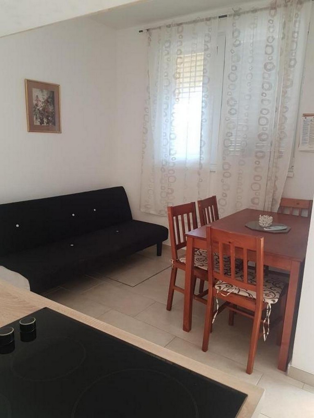 Apartment can accommodate 4 guests. Beds are situated in 1 sleeping rooms, but also in the dining room, within 33m2. Guests can use a private terrace to enjoy the warm summer evenings. Food can be prepared using barbecue which is shared with other guests too. This accommodation unit welcomes pets at no additional costs. INCLUDED IN THE PRICE: tourist tax, final cleaning, air-conditioning, parking, internet, pets. The availability of additional services for your chosen dates of stay, as well as their prices (if none are listed) must be checked ahead of time. Any additional services not shown in the price calculation are payable directly to the property owner and only if used by the visitor.