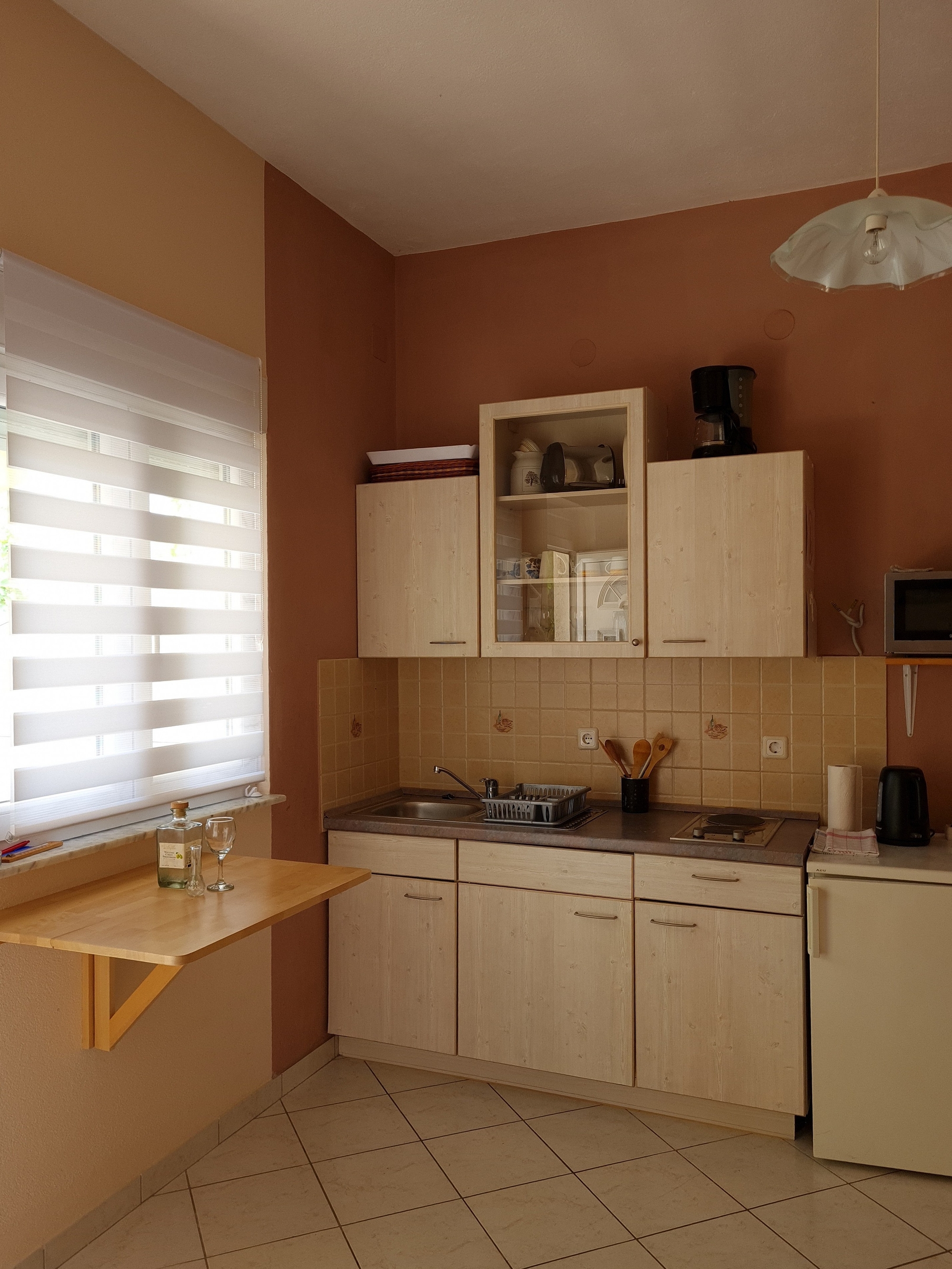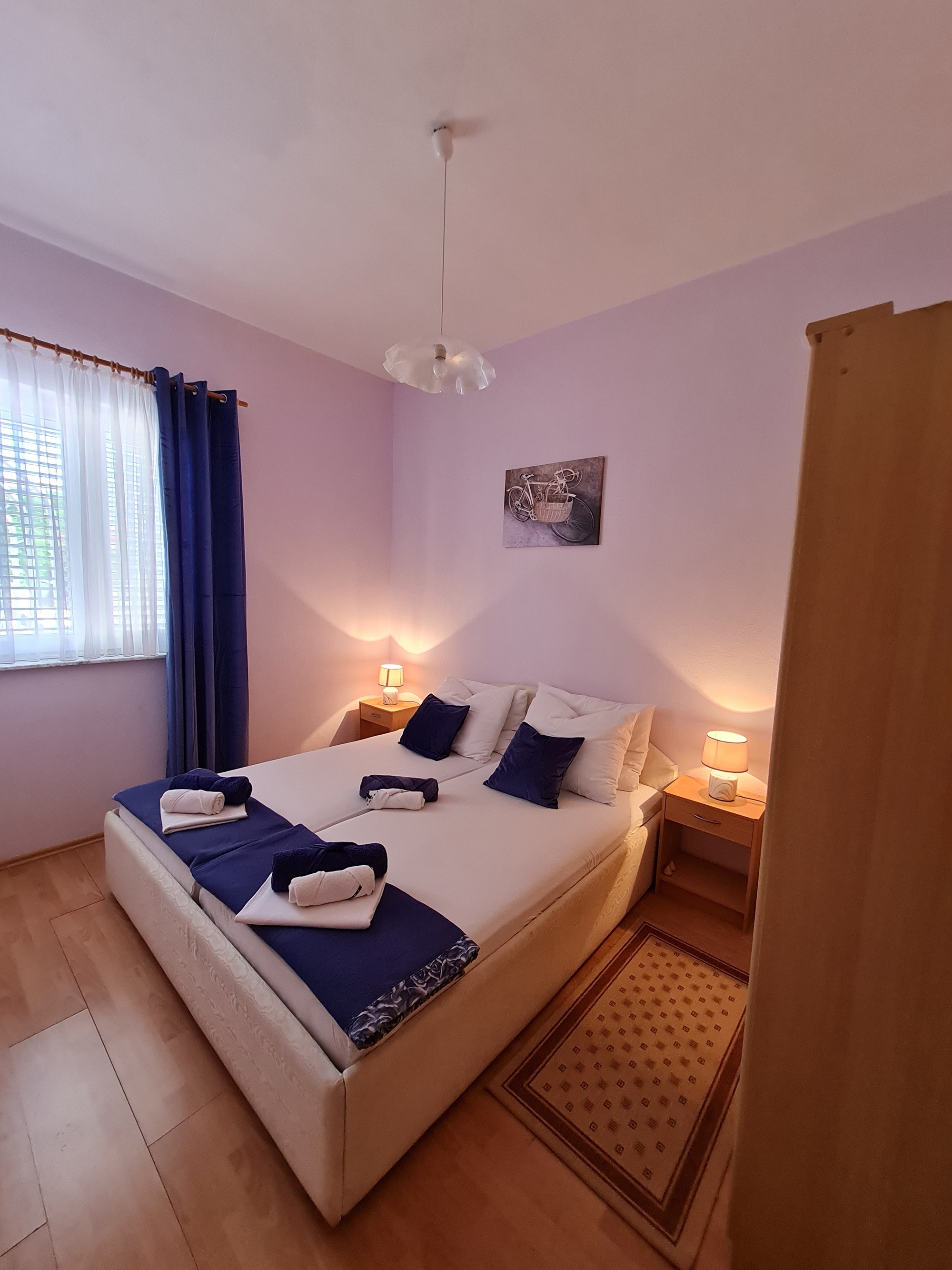 Apartment can accommodate 4 guests. Beds are situated in 1 sleeping rooms, but also in the living room, within 27m2. Guests can use a private terrace to enjoy the warm summer evenings. Food can be prepared using barbecue which is shared with other guests too. INCLUDED IN THE PRICE: tourist tax, final cleaning, air-conditioning, parking, internet, bicycle, baby cot. OBLIGATORY ADDITIONAL COSTS: short stay fee (surcharge depending on a number of booked nights: 30% - 1, 20% - 2, 10% - 3). OPTIONAL ADDITIONAL COSTS: laundry (€5.00 washing), additional bed (€5.00 per night). The availability of additional services for your chosen dates of stay, as well as their prices (if none are listed) must be checked ahead of time. Any additional services not shown in the price calculation are payable directly to the property owner and only if used by the visitor.