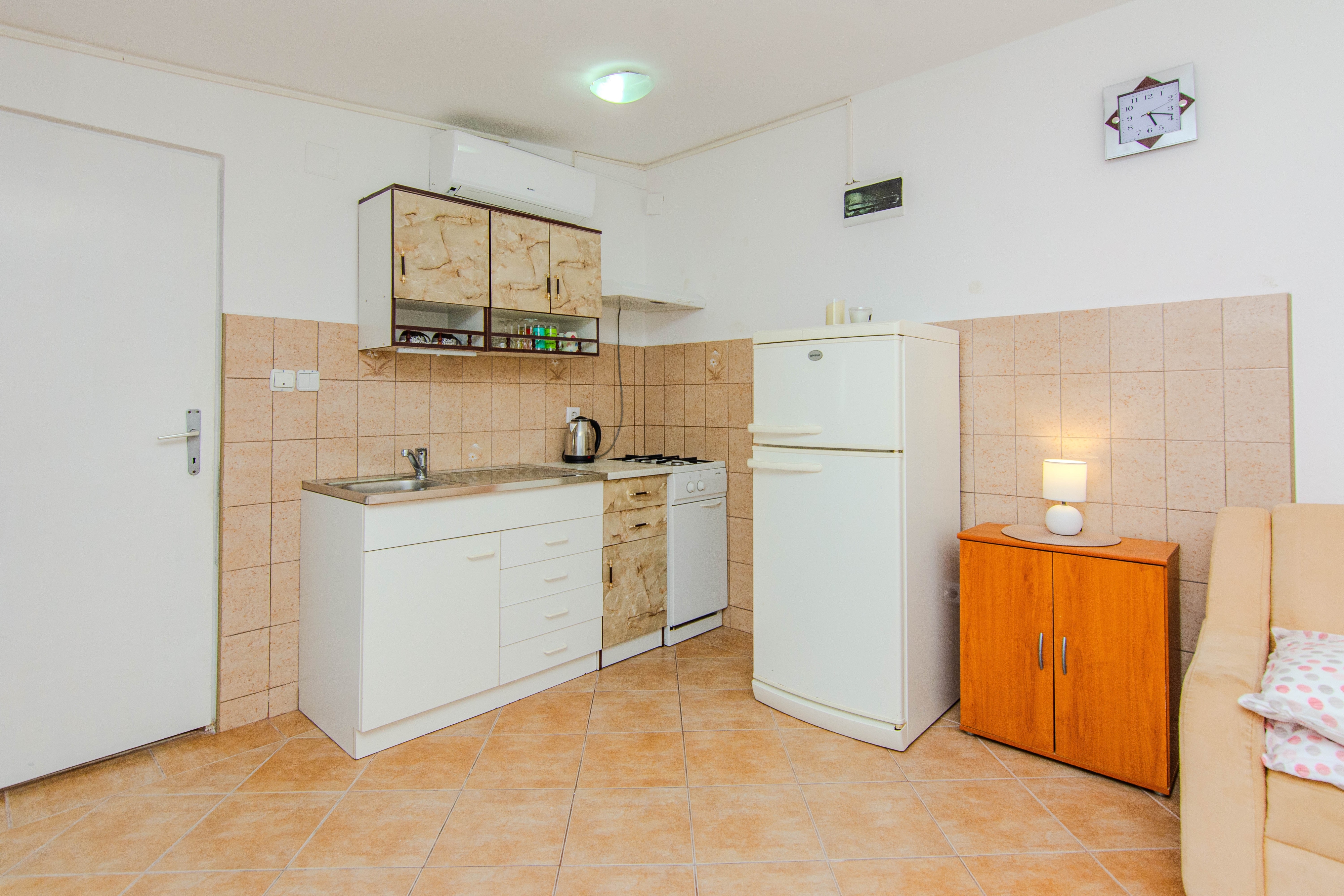 Apartment can accommodate 4 guests. Beds are situated in 1 sleeping rooms, but also in the living room, within 40m2. Guests can use a private terrace to enjoy the warm summer evenings. Food can be prepared using barbecue which is shared with other guests too. INCLUDED IN THE PRICE: tourist tax, final cleaning, air-conditioning, parking, internet, iron, ironing board, hairdryer. OBLIGATORY ADDITIONAL COSTS: short stay fee (surcharge depending on a number of booked nights: 30% - 1, 20% - 2, 10% - 3). The availability of additional services for your chosen dates of stay, as well as their prices (if none are listed) must be checked ahead of time. Any additional services not shown in the price calculation are payable directly to the property owner and only if used by the visitor.