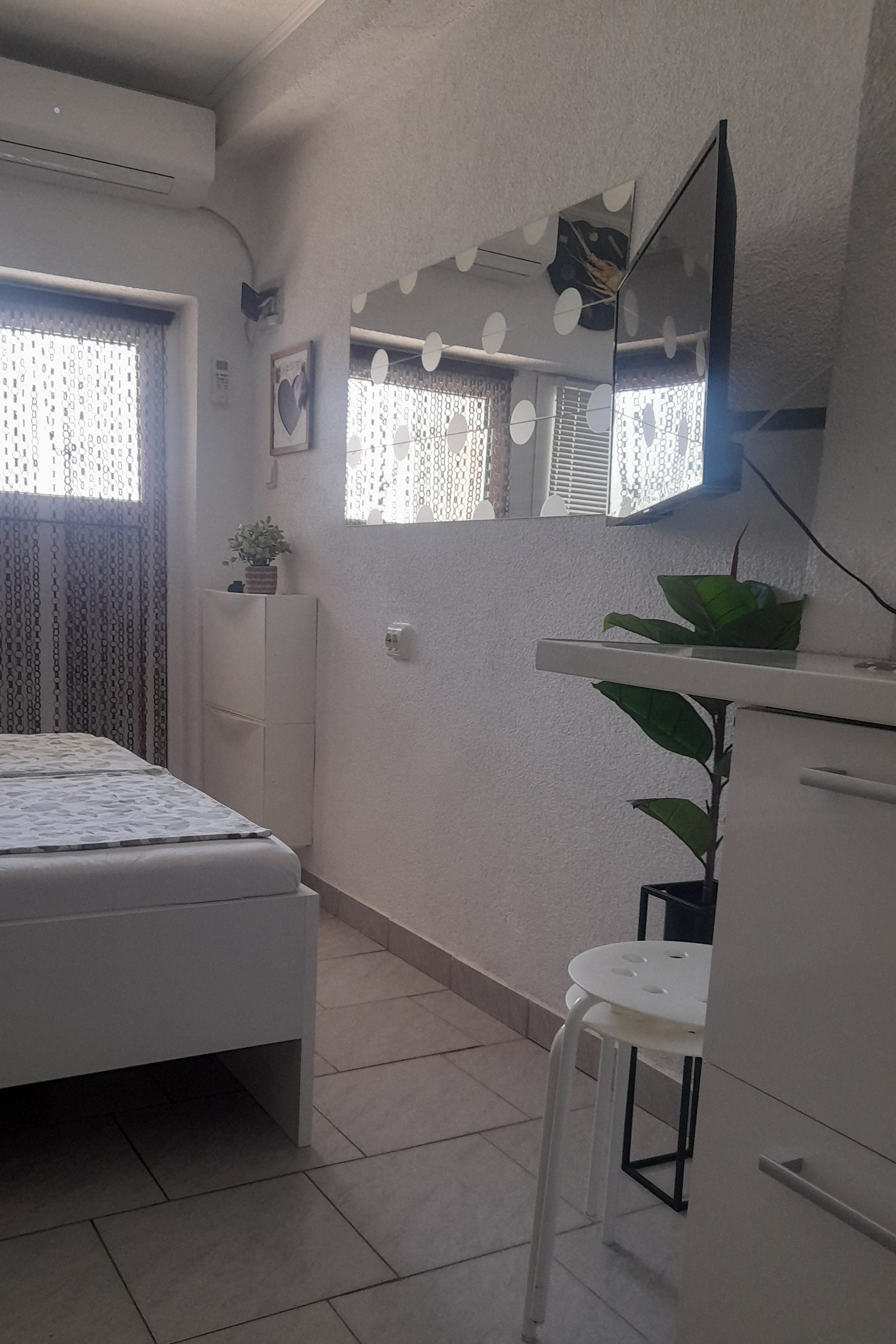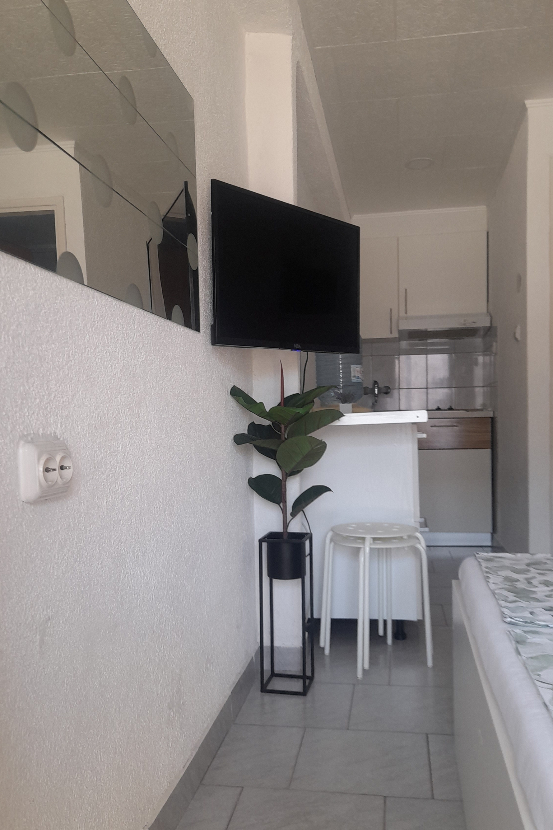 Studio flat can accommodate 2 guests. Beds are situated in 1 sleeping rooms, within 18m2. Guests can use a private terrace to enjoy the warm summer evenings. Food can be prepared using barbecue which is shared with other guests too. This accommodation unit welcomes pets at an additional charge. INCLUDED IN THE PRICE: tourist tax, final cleaning, parking, internet, laundry, boat mooring, baby cot, iron, ironing board, sunshade. OPTIONAL ADDITIONAL COSTS: air-conditioning (€5.00 per night), boat (€5.00 per night), pets (€10.00 per night). The availability of additional services for your chosen dates of stay, as well as their prices (if none are listed) must be checked ahead of time. Any additional services not shown in the price calculation are payable directly to the property owner and only if used by the visitor.