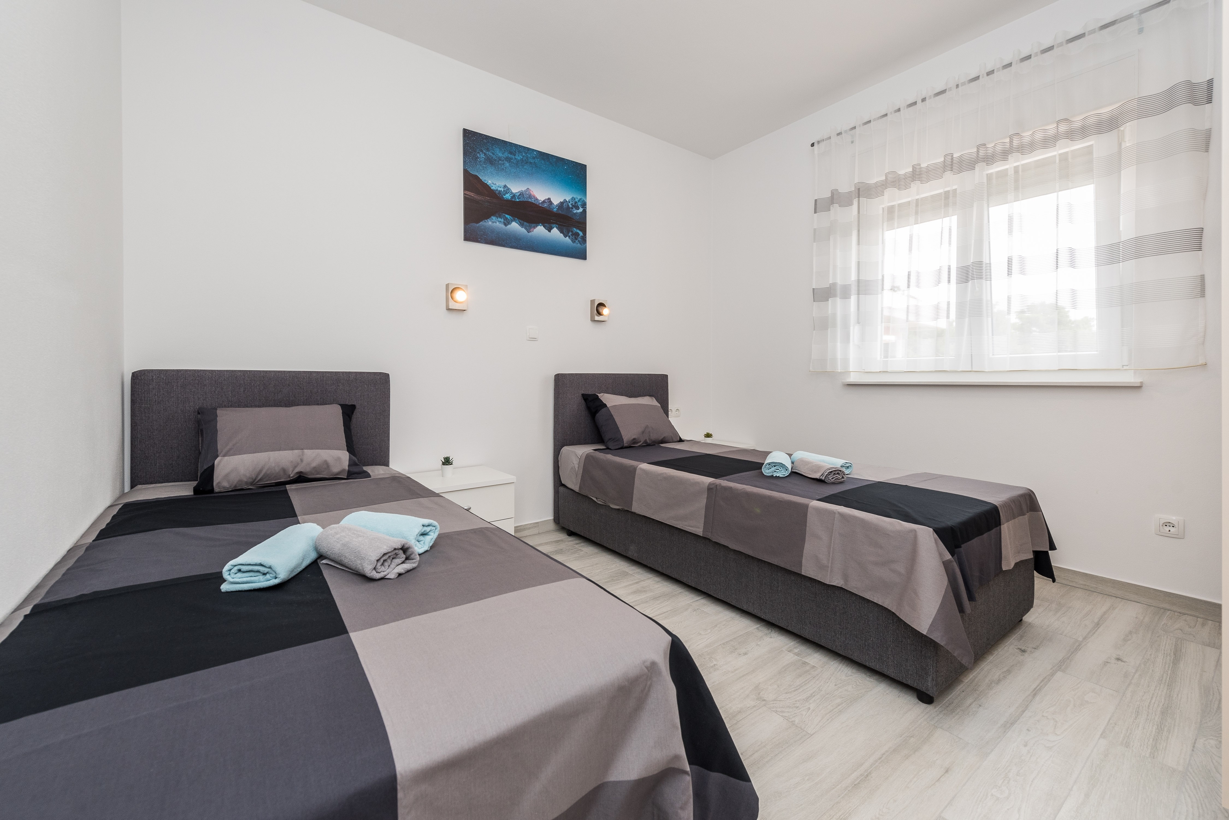Apartment can accommodate 6 guests. Beds are situated in 2 sleeping rooms, but also in the living room, within 59m2. Guests can use a private terrace to enjoy the warm summer evenings. Food can be prepared using barbecue which is shared with other guests too. INCLUDED IN THE PRICE: tourist tax, final cleaning, air-conditioning, parking, internet, baby cot, iron, ironing board, hairdryer. OBLIGATORY ADDITIONAL COSTS: short stay fee (surcharge depending on a number of booked nights: 30% - 1, 20% - 2, 10% - 3). The availability of additional services for your chosen dates of stay, as well as their prices (if none are listed) must be checked ahead of time. Any additional services not shown in the price calculation are payable directly to the property owner and only if used by the visitor.