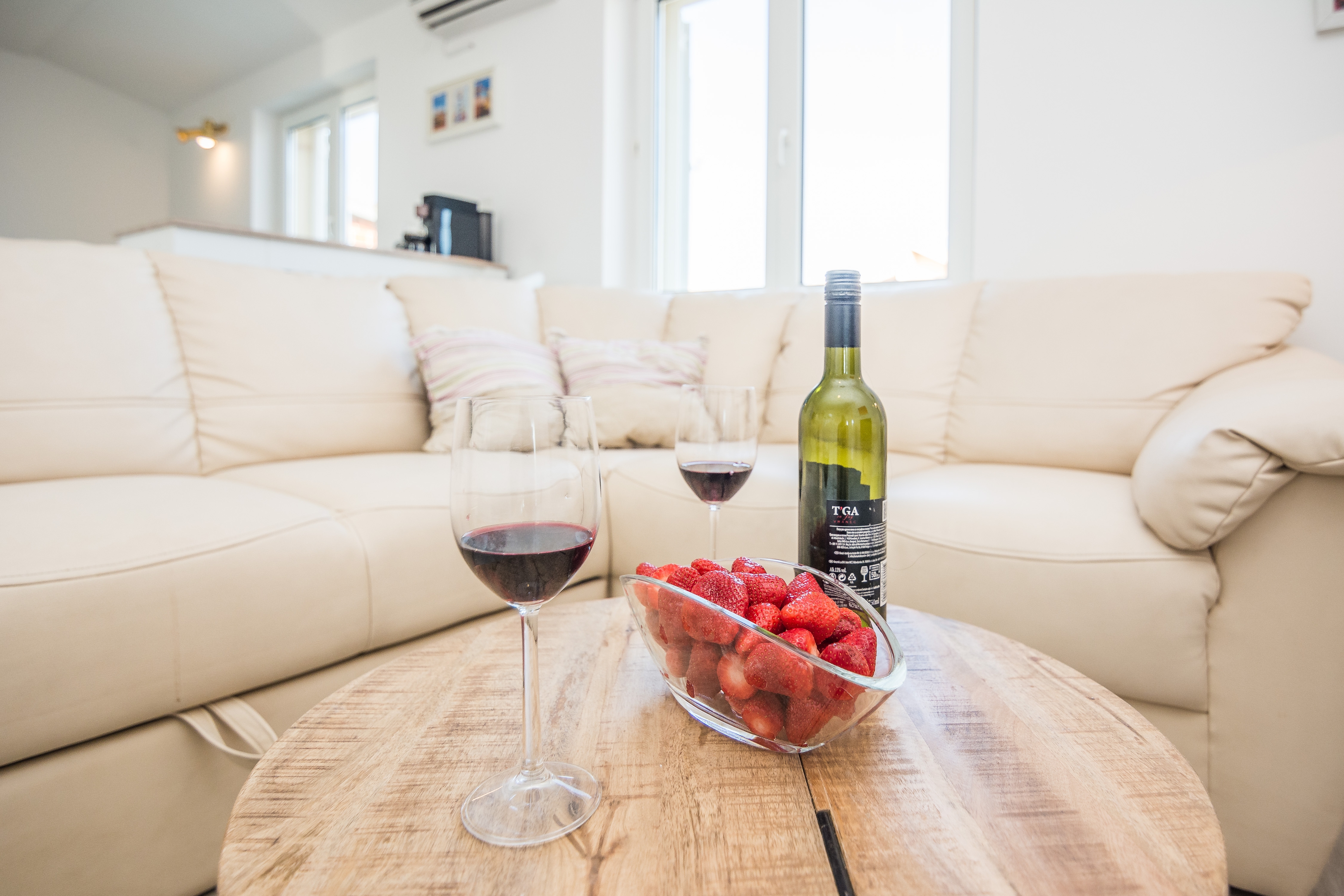 Apartment can accommodate 6 guests. Beds are situated in 2 sleeping rooms, but also in the living room, within 53m2. Guests can use a private terrace to enjoy the warm summer evenings. Food can be prepared using barbecue which is shared with other guests too. INCLUDED IN THE PRICE: tourist tax, final cleaning, air-conditioning, parking, internet, iron, ironing board, hairdryer. OBLIGATORY ADDITIONAL COSTS: short stay fee (surcharge depending on a number of booked nights: 30% - 1, 20% - 2, 10% - 3). The availability of additional services for your chosen dates of stay, as well as their prices (if none are listed) must be checked ahead of time. Any additional services not shown in the price calculation are payable directly to the property owner and only if used by the visitor.