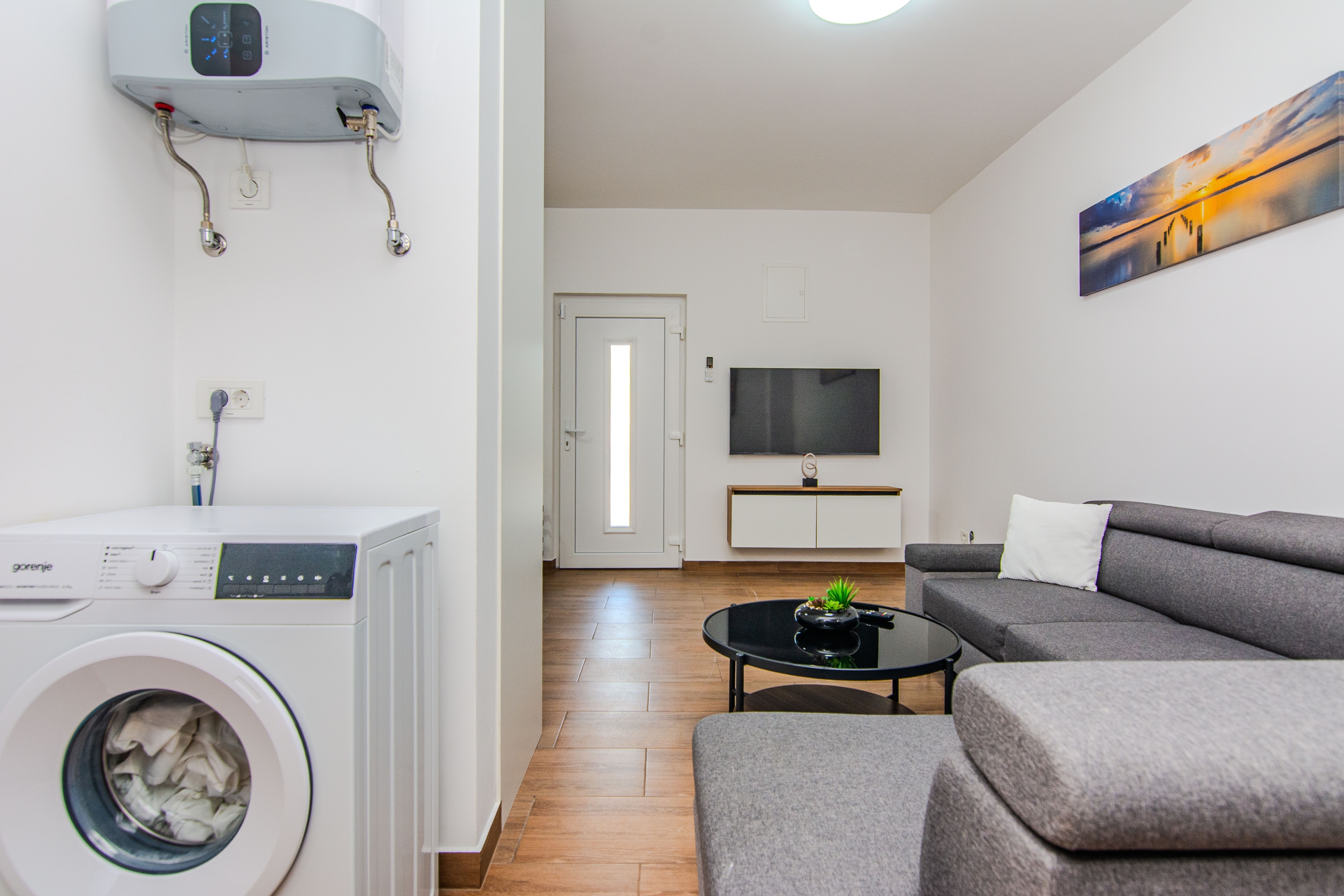 Apartment can accommodate 4 guests. Beds are situated in 2 sleeping rooms, within 60m2. Guests can use a private terrace to enjoy the warm summer evenings. INCLUDED IN THE PRICE: tourist tax, final cleaning, air-conditioning, parking, internet, iron, ironing board, hairdryer. OBLIGATORY ADDITIONAL COSTS: short stay fee (surcharge depending on a number of booked nights: 30% - 1, 20% - 2, 10% - 3). The availability of additional services for your chosen dates of stay, as well as their prices (if none are listed) must be checked ahead of time. Any additional services not shown in the price calculation are payable directly to the property owner and only if used by the visitor.