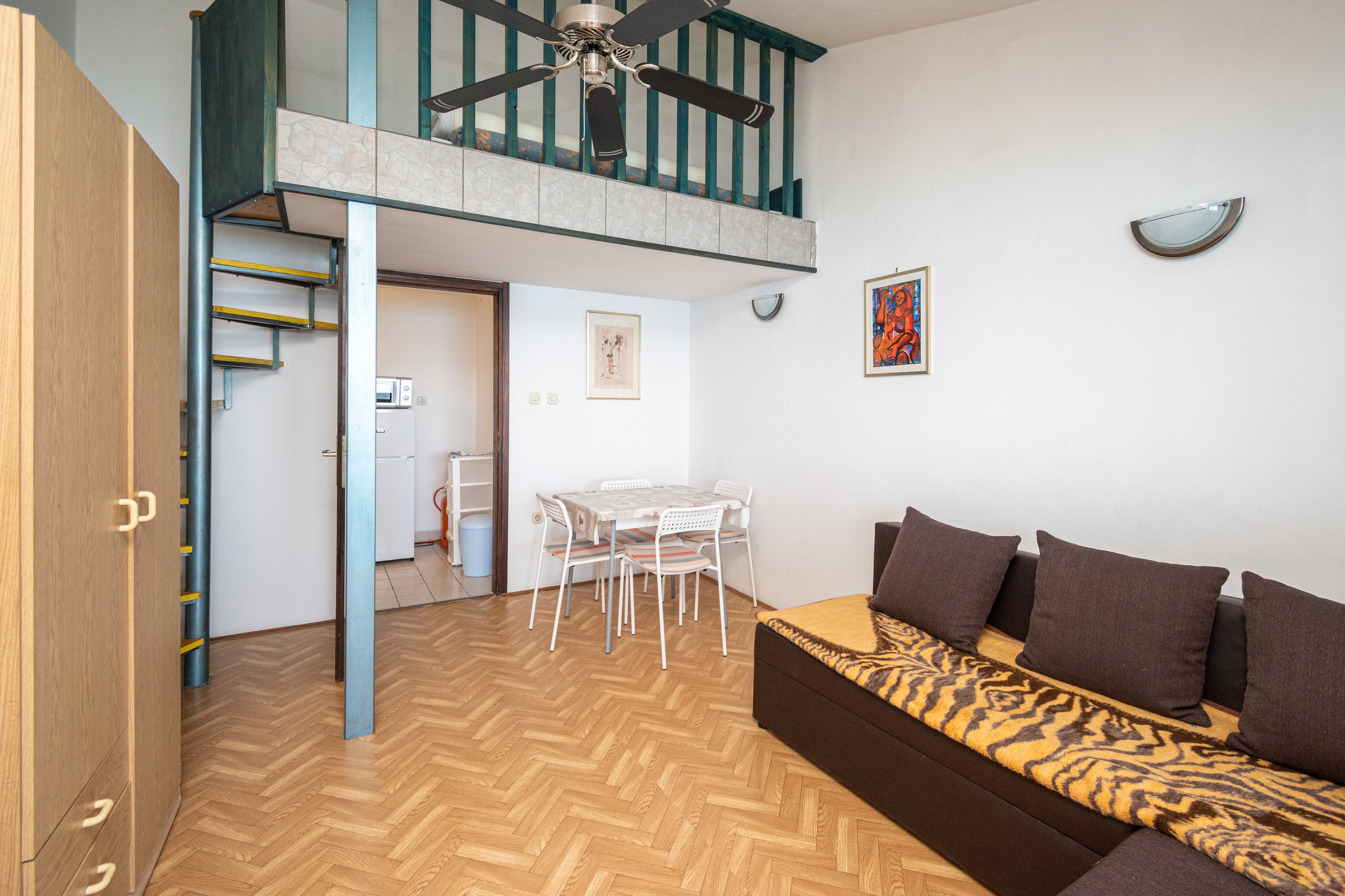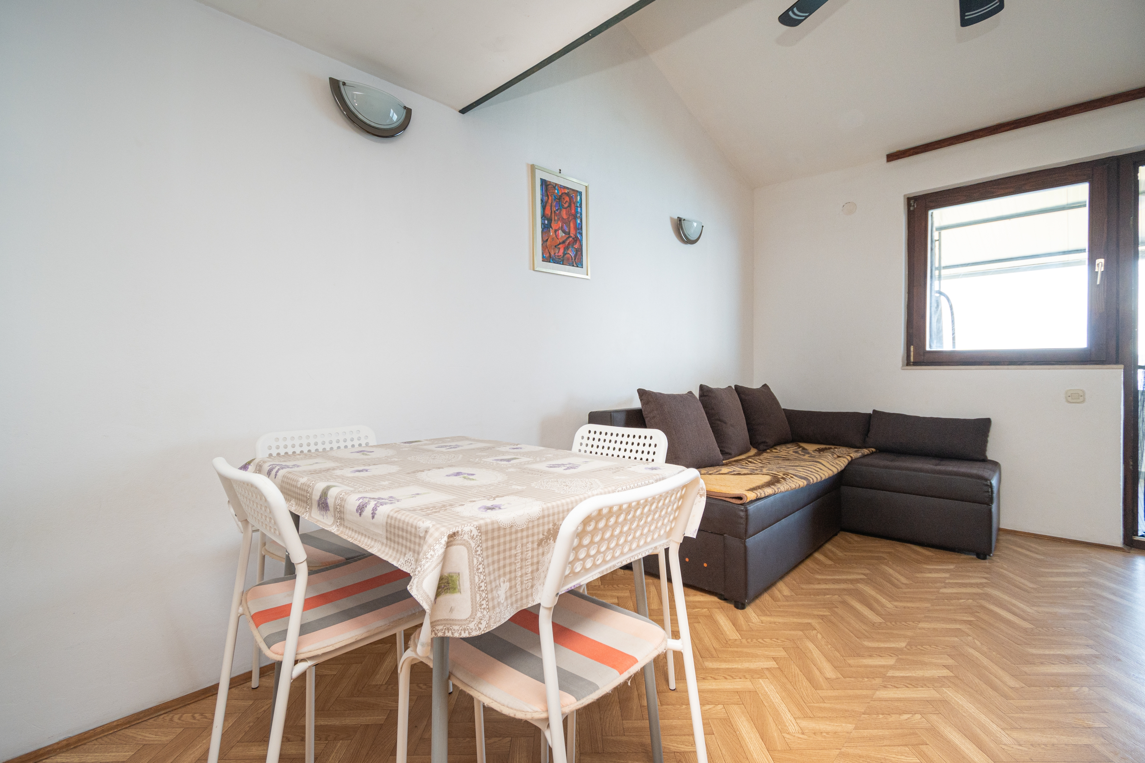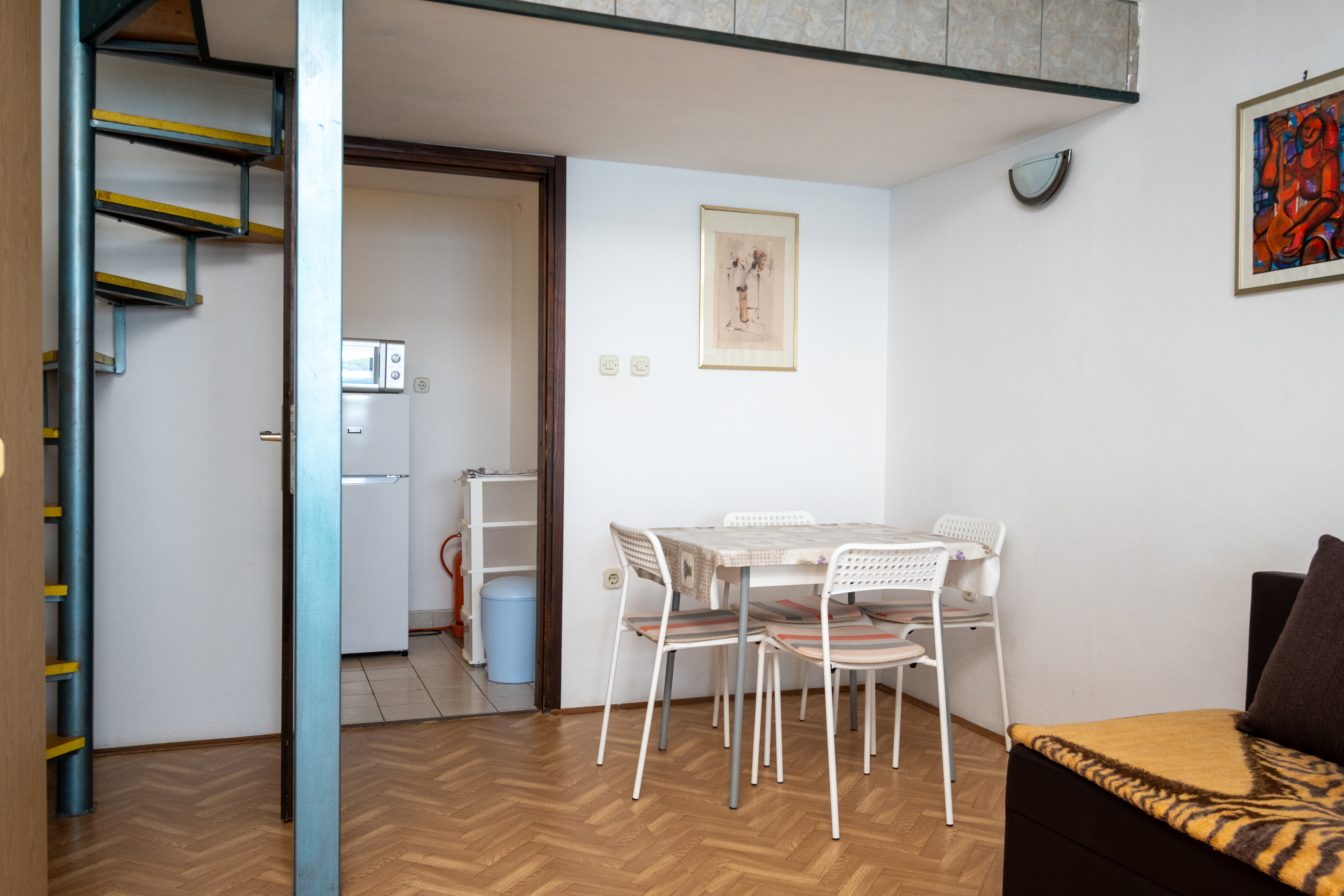 Apartment can accommodate 4 guests. Beds are situated in 1 sleeping rooms, but also in the living room, within 42m2. Guests can use a private terrace to enjoy the warm summer evenings. The apartment offers the sea view. Food can be prepared using barbecue which is shared with other guests too. INCLUDED IN THE PRICE: tourist tax, final cleaning, parking, internet, baby cot, iron, ironing board, hairdryer. OPTIONAL ADDITIONAL COSTS: air-conditioning (€7.00 per night), laundry (€7.00 washing), boat mooring (€8.00 per night). The availability of additional services for your chosen dates of stay, as well as their prices (if none are listed) must be checked ahead of time. Any additional services not shown in the price calculation are payable directly to the property owner and only if used by the visitor. Discounts to the base price: free day 28=25 (for stays of 28 days or more, we give you 3 days free of charge for the stay until 31122026).