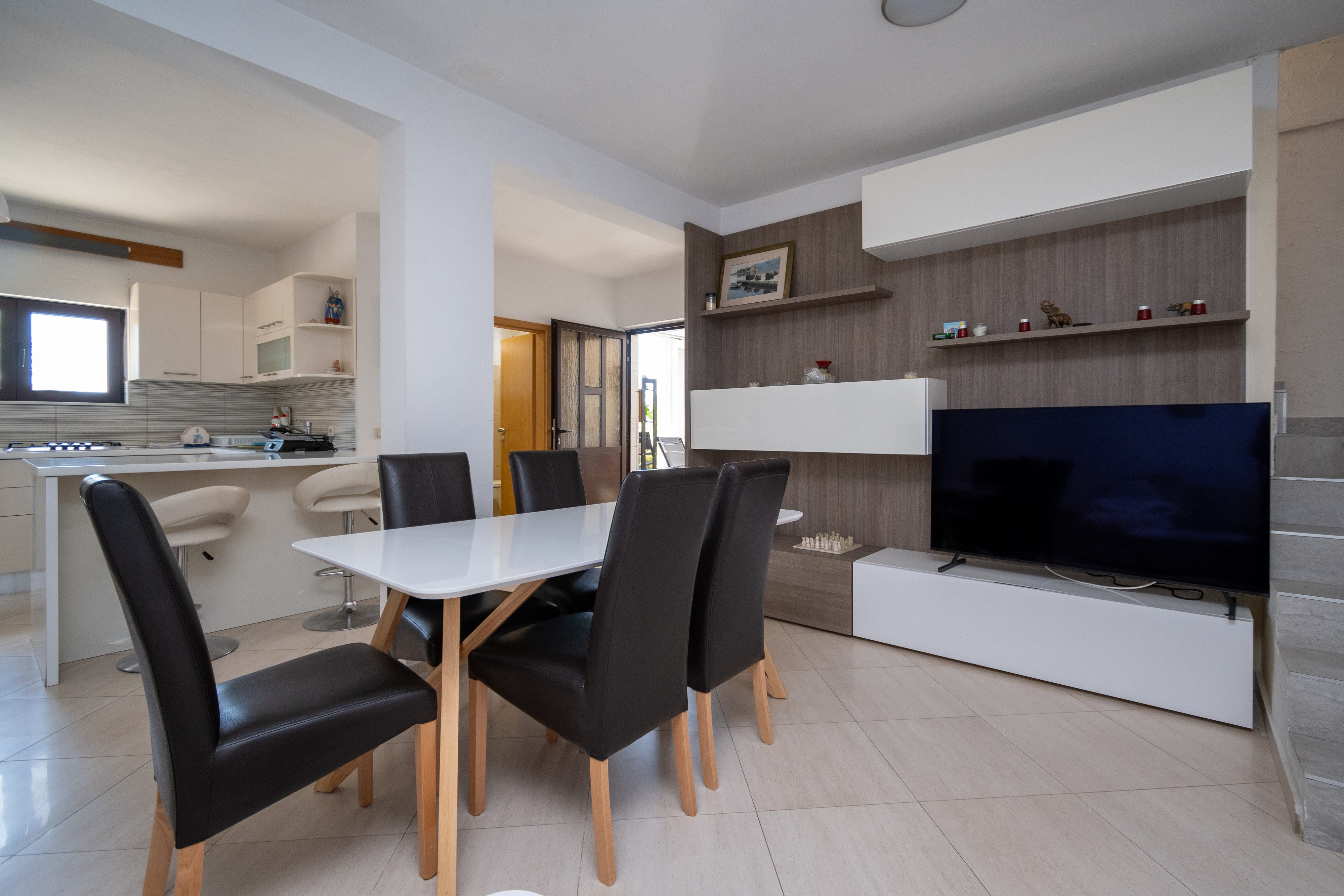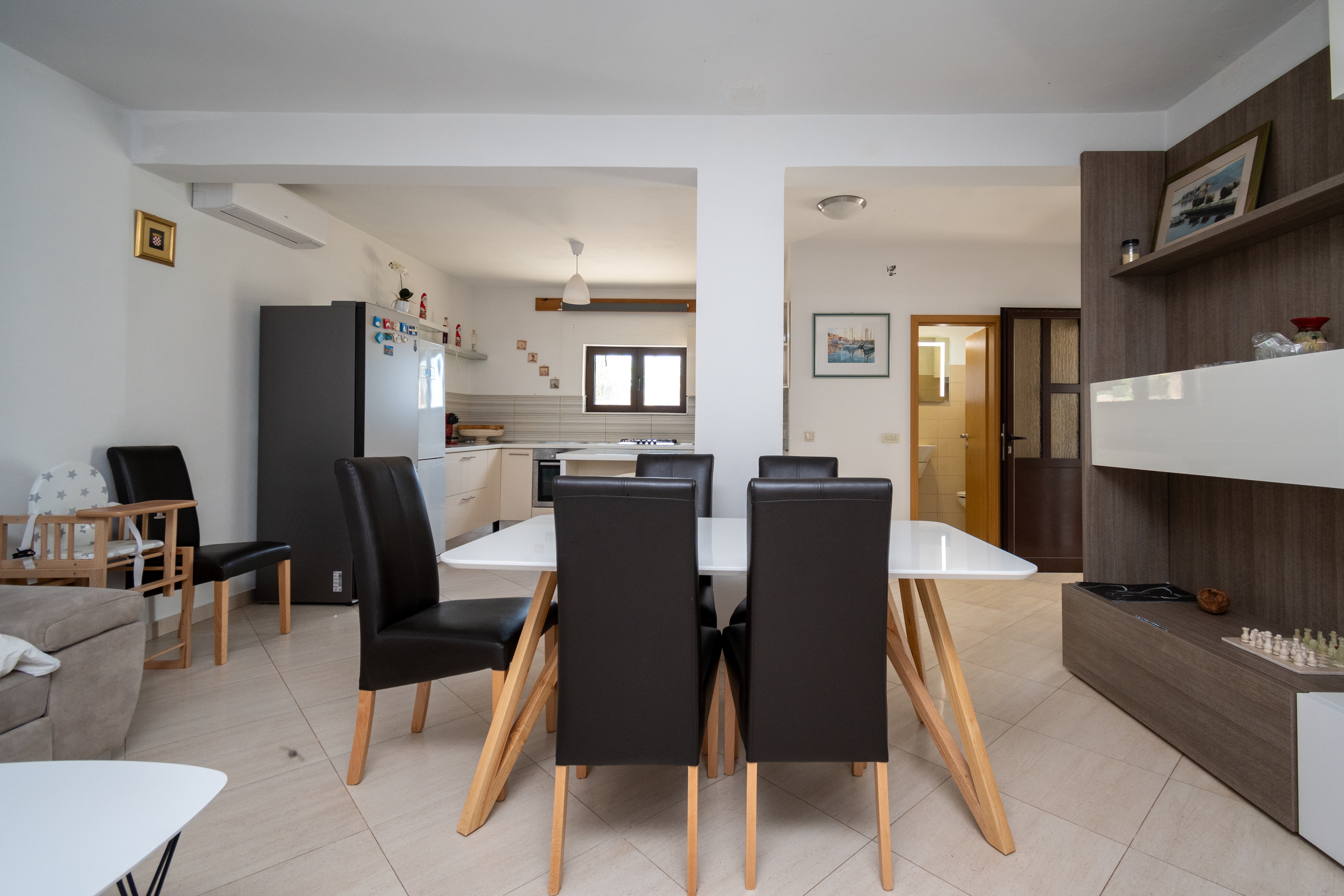 House can accommodate 8 guests. Beds are situated in 3 sleeping rooms, but also in the living room, within 123m2. Guests can use a private terrace to enjoy the warm summer evenings. For full enjoyment and relaxation there is a private barbecue for this accommodation guests only. During stay, there is a private pool for relaxation and pleasure. INCLUDED IN THE PRICE: tourist tax, final cleaning, air-conditioning, pool, parking, internet, baby cot, iron, ironing board, hairdryer. The availability of additional services for your chosen dates of stay, as well as their prices (if none are listed) must be checked ahead of time. Any additional services not shown in the price calculation are payable directly to the property owner and only if used by the visitor. Discounts to the base price: free day 14=13 (for reservations of 14 or more days you get one free day for the stay until 31122026).