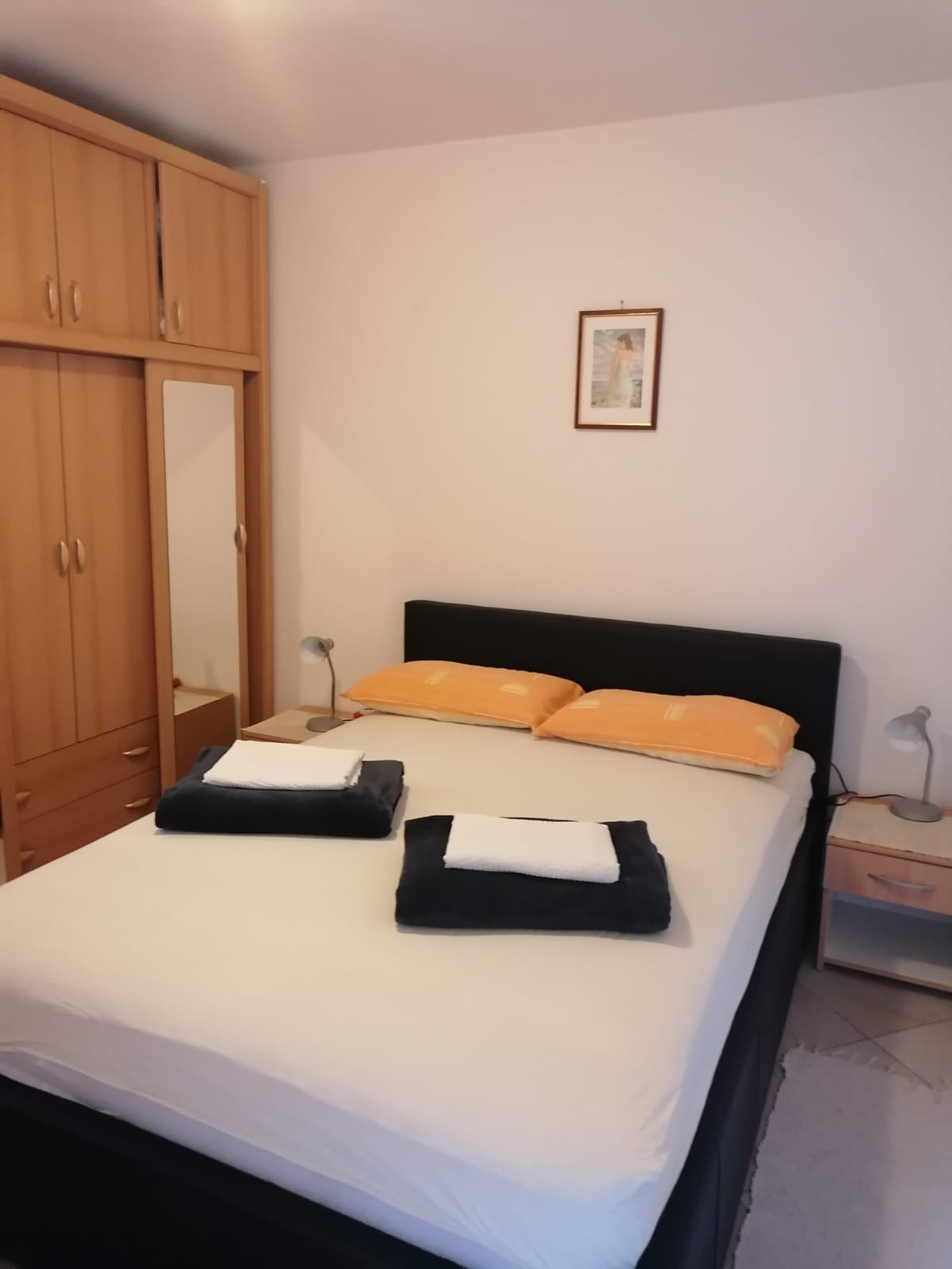 Apartment can accommodate 4 guests. Beds are situated in 1 sleeping rooms, but also in the living room, within 28m2. Guests can use a private terrace to enjoy the warm summer evenings. The apartment offers the sea view. Food can be prepared using barbecue which is shared with other guests too. INCLUDED IN THE PRICE: tourist tax, final cleaning, air-conditioning, parking, internet. OBLIGATORY ADDITIONAL COSTS: short stay fee (surcharge depending on a number of booked nights: 30% - 1, 20% - 2, 10% - 3). The availability of additional services for your chosen dates of stay, as well as their prices (if none are listed) must be checked ahead of time. Any additional services not shown in the price calculation are payable directly to the property owner and only if used by the visitor.