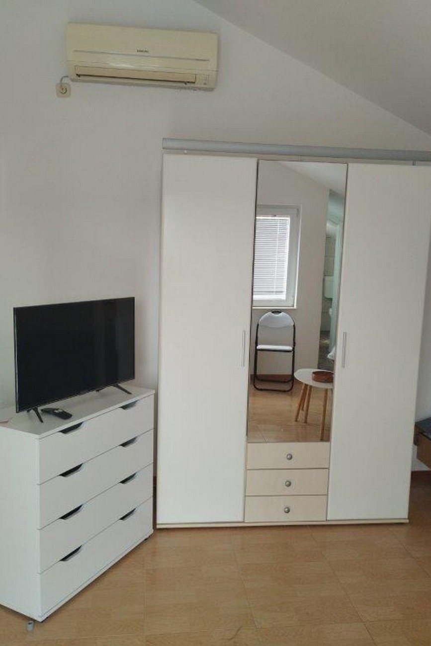 Studio flat can accommodate 3 guests. Beds are situated in 1 sleeping rooms, within 18m2. Guests can use a private terrace to enjoy the warm summer evenings. The studio offers the sea view. Food can be prepared using barbecue which is shared with other guests too. INCLUDED IN THE PRICE: tourist tax, final cleaning, air-conditioning, parking, internet, baby cot, iron, ironing board, hairdryer. OPTIONAL ADDITIONAL COSTS: laundry (€5.00 washing). The availability of additional services for your chosen dates of stay, as well as their prices (if none are listed) must be checked ahead of time. Any additional services not shown in the price calculation are payable directly to the property owner and only if used by the visitor.