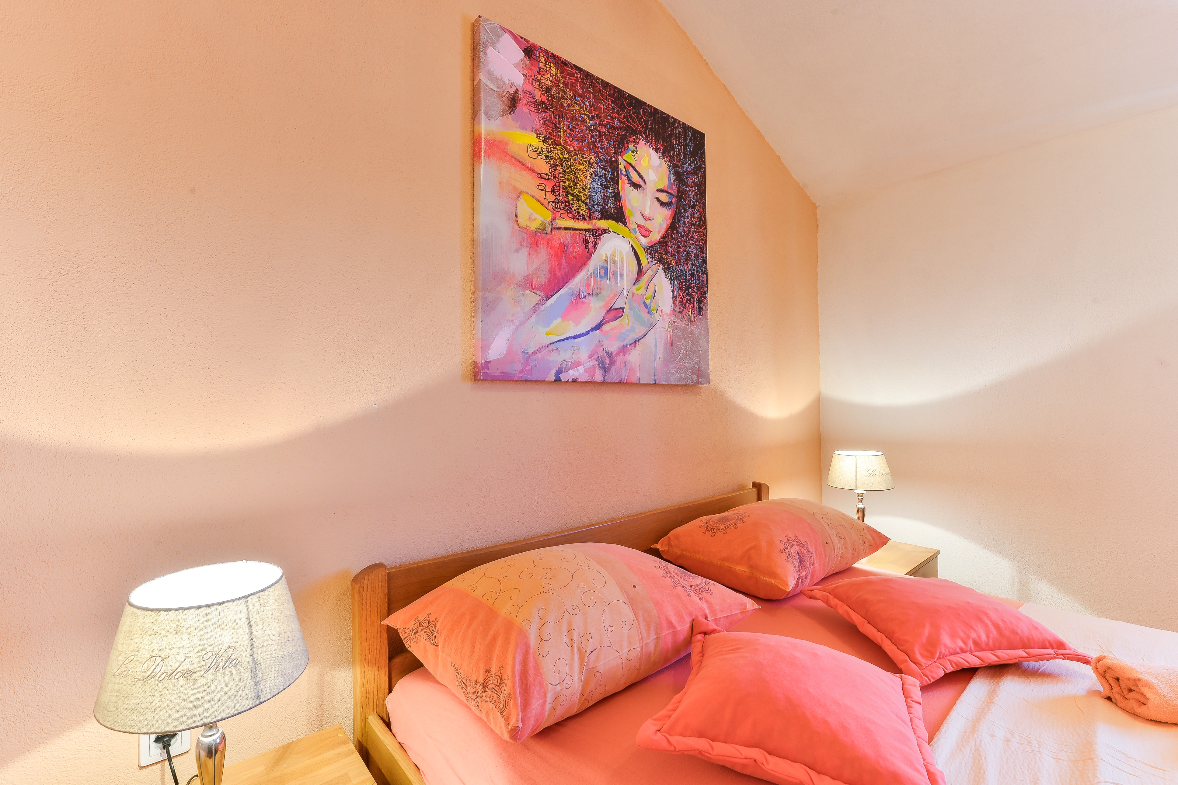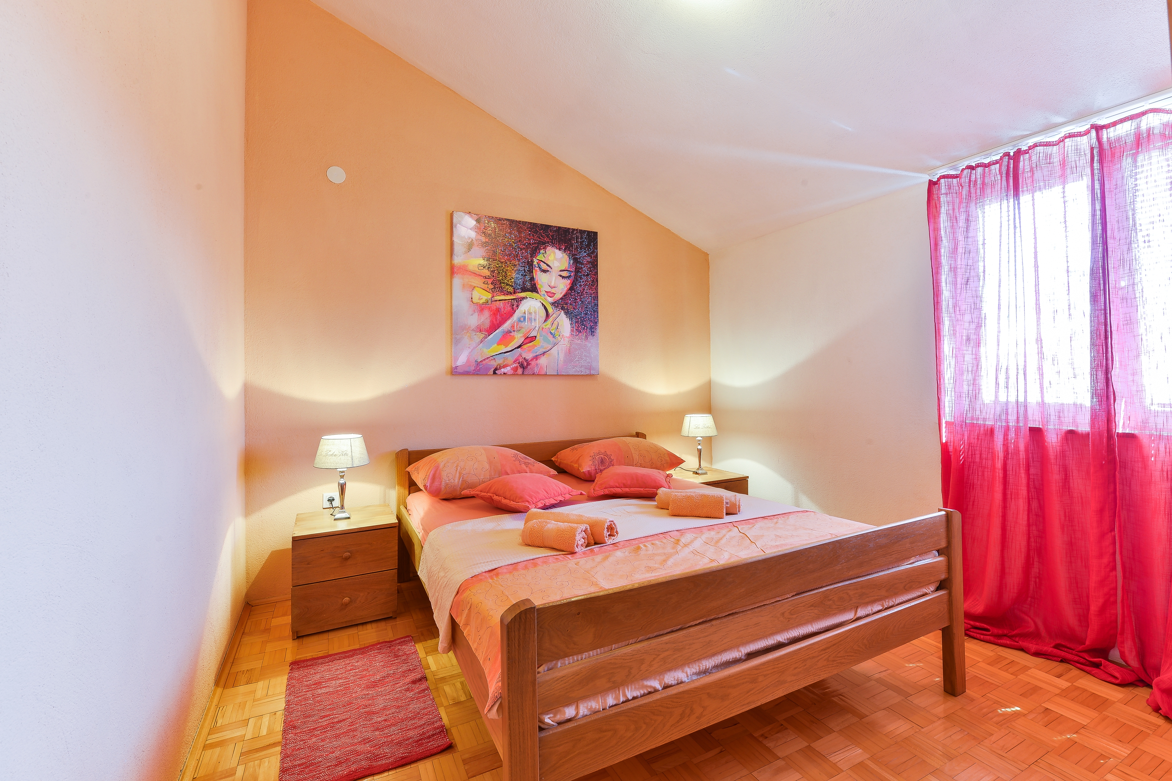 Apartment can accommodate 4 guests. Beds are situated in 2 sleeping rooms, within 47m2. Guests can use a private balcony to enjoy the warm summer evenings. Food can be prepared using barbecue which is shared with other guests too. Shared pool is on disposal during stay. INCLUDED IN THE PRICE: tourist tax, final cleaning, air-conditioning, pool, parking, internet, iron, hairdryer. The availability of additional services for your chosen dates of stay, as well as their prices (if none are listed) must be checked ahead of time. Any additional services not shown in the price calculation are payable directly to the property owner and only if used by the visitor. Discounts to the base price: free day 14=13 (for reservations of 14 or more days you get one free day for the stay until 31122026).