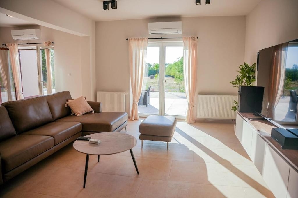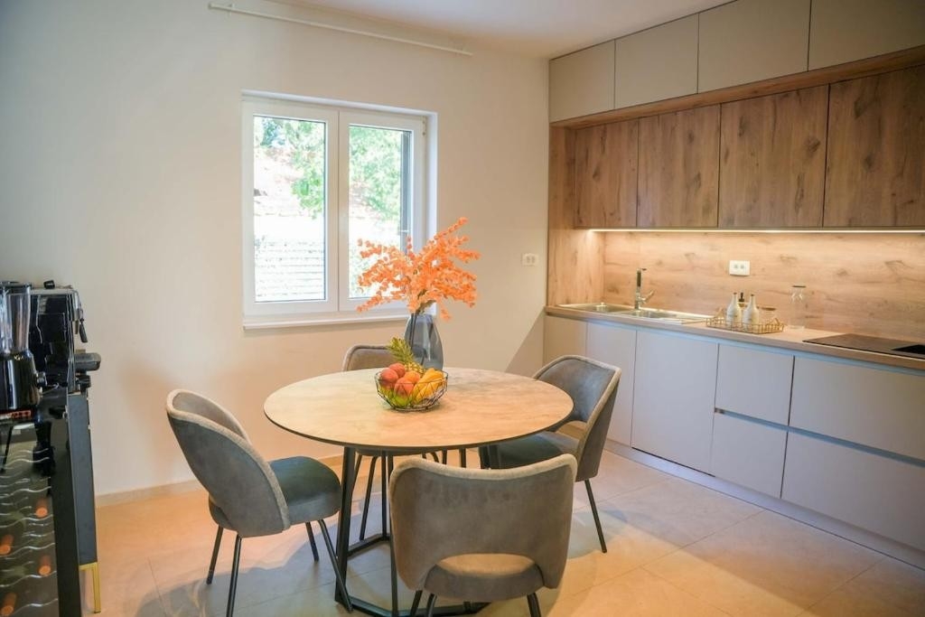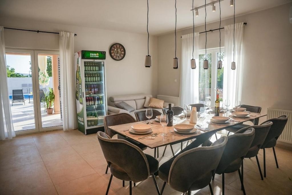 House can accommodate 9 guests. Beds are situated in 5 sleeping rooms, within 151m2. Food can be prepared using barbecue which is shared with other guests too. During stay, there is a private pool for relaxation and pleasure. This accommodation unit welcomes pets at no additional costs. There is no balcony or terrace in the reserved accommodation unit. INCLUDED IN THE PRICE: tourist tax, final cleaning, air-conditioning, pool, parking, internet, pets, baby cot, iron, ironing board, hairdryer, portable barbecue, sunchairs. The availability of additional services for your chosen dates of stay, as well as their prices (if none are listed) must be checked ahead of time. Any additional services not shown in the price calculation are payable directly to the property owner and only if used by the visitor.